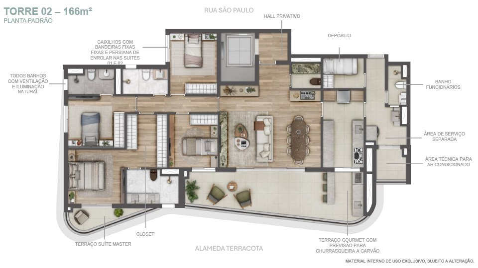 4 dorms, 2 ou 3 suítes, 3 vagas e depósito.