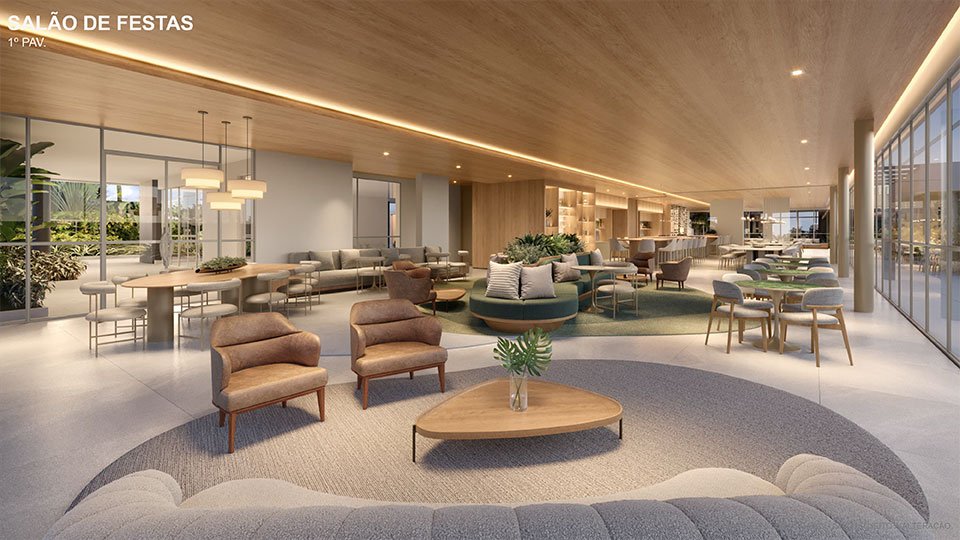 • 02 salões de festas com churrasqueira e lounge externo
